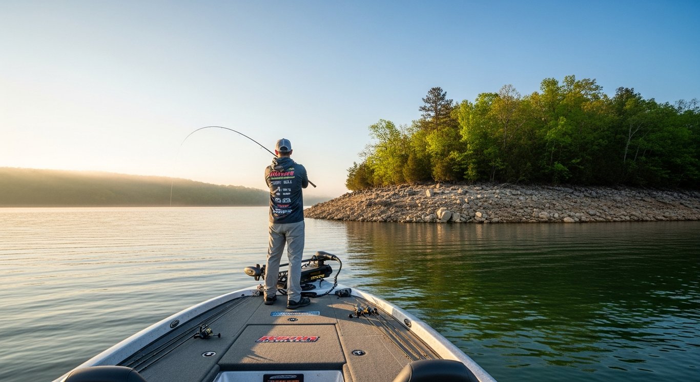 Bluff walls and riprap: Any steep hard bank concentrates baitfish. Position your boat 30 to 40 feet off the bank and cast tight to the wall. Let the bait work its way down the slope with each pause.
