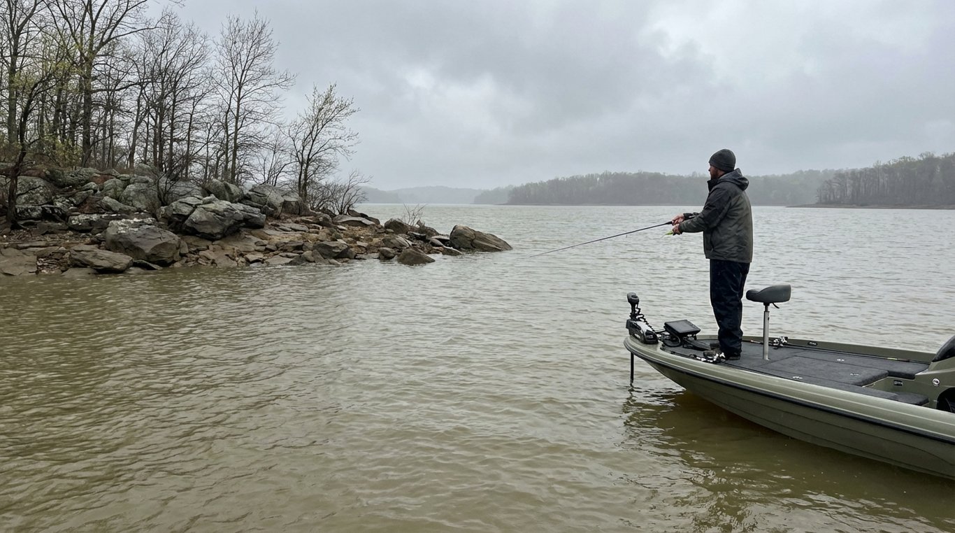 Look for them staging on secondary points, channel swings near flats, and the first major break line between deep and shallow water. Rocky transitions — where chunk rock meets gravel — are magnets during this phase. Depths of 5 to 12 feet are the sweet spot, though bass may push shallower on warm afternoons.